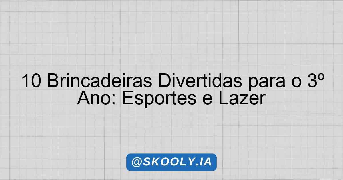🎈 10 Brincadeiras para 3º ano EF