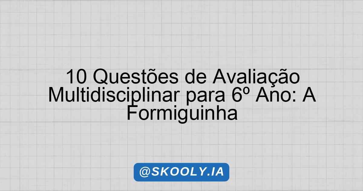 10 Questões de Avaliação Multidisciplinar para 6º Ano: A Formiguinha