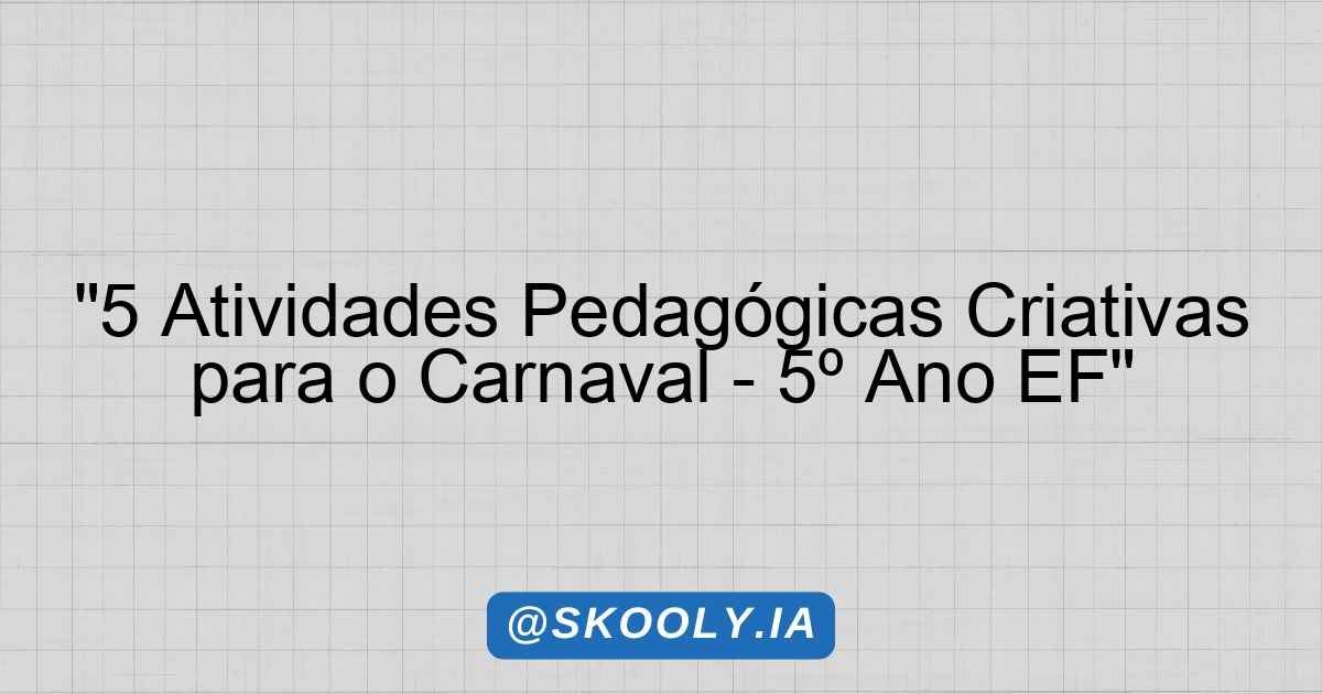 Atividades Pedagógicas para o Carnaval – 5º Ano EF