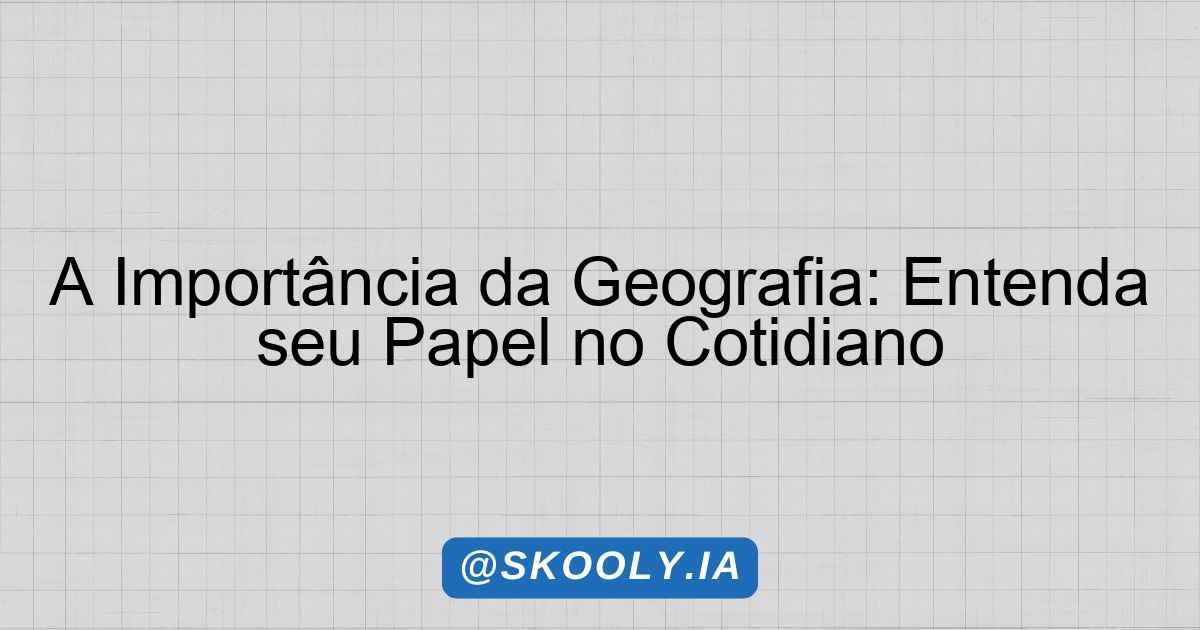 Compreender a importância da Geografia no cotidiano e desenvolver um olhar crítico sobre o espaço geográfico e suas interações.