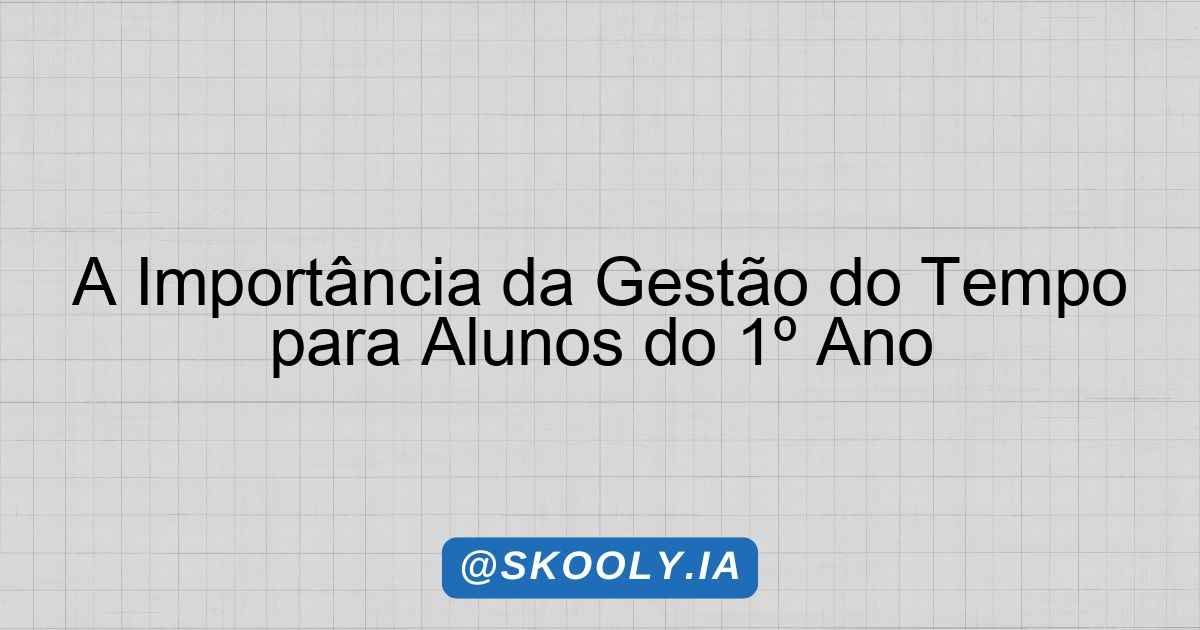 A gestão do tempo é crucial para o sucesso acadêmico e pessoal. Aprender a administrar o tempo desde cedo ajuda os alunos a manterem o foco, a reduzirem o estresse e a se prepararem para desafios futuros.