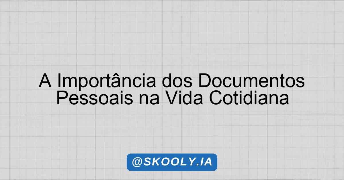 Nesta atividade, exploraremos a relevância dos documentos pessoais no nosso cotidiano. Compreender a função e a importância desses documentos é essencial para garantir nossos direitos e facilitar nosso dia a dia, seja no trabalho, na educação ou em situações cotidianas.