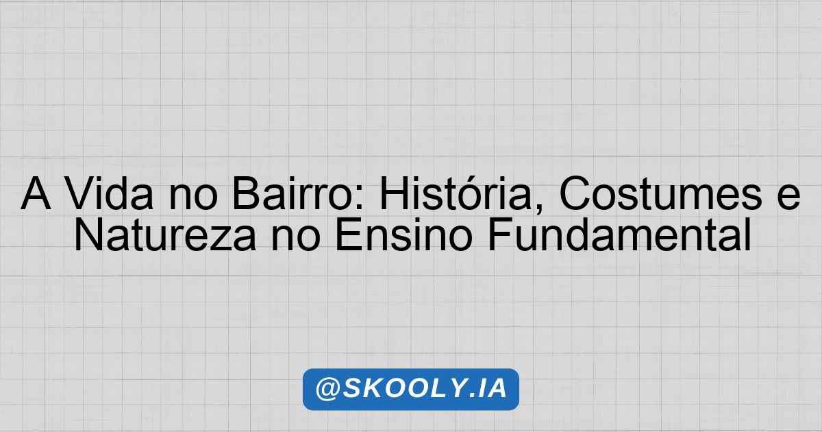 Neste plano de aula, iremos explorar o tema “A Vida no Bairro: história, costumes e natureza”, proporcionando aos alunos do 2º ano do Ensino Fundamental uma visão mais profunda sobre a geografia local. O plano visa despertar o interesse e a curiosidade dos alunos sobre o ambiente que os cerca, estimulando o respeito às diferenças culturais e a compreensão da relação entre a natureza e a vida cotidiana, em consonância com a base curricular da BNCC.