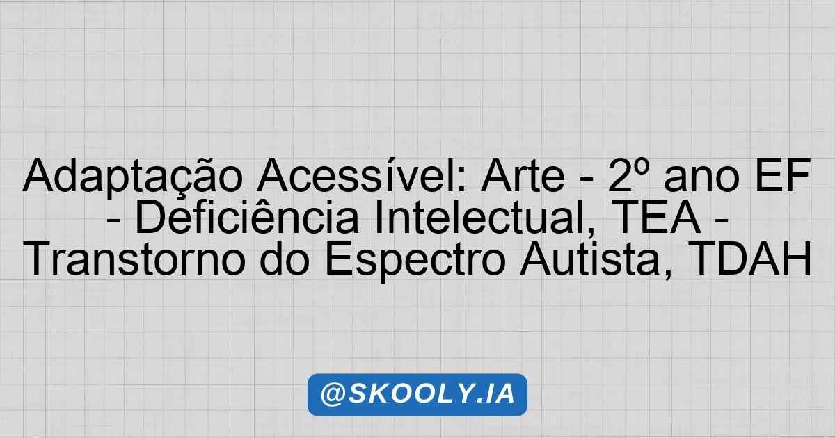 Esta proposta de adaptação pedagógica para a aula de Arte, focada em música e instrumentos musicais, visa atender alunos com Deficiência Intelectual, Transtorno do Espectro Autista (TEA) e Transtorno do Déficit de Atenção com Hiperatividade (TDAH). As adaptações contemplam abordagens visuais, auditivas, concretas e lúdicas, promovendo a inclusão e a participação ativa de todos os alunos.