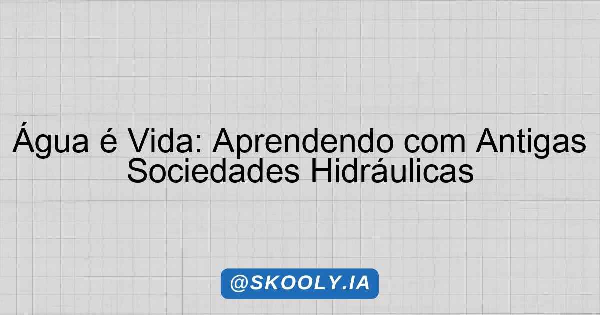 Nesta atividade, os alunos irão explorar como as antigas sociedades hidráulicas, como os egípcios e mesopotâmios, utilizavam a água como um recurso vital para seu desenvolvimento. Através de uma leitura crítica e contextualizada, será possível entender a importância da gestão hídrica, que se reflete até os dias de hoje em questões como agricultura, urbanização e preservação ambiental.