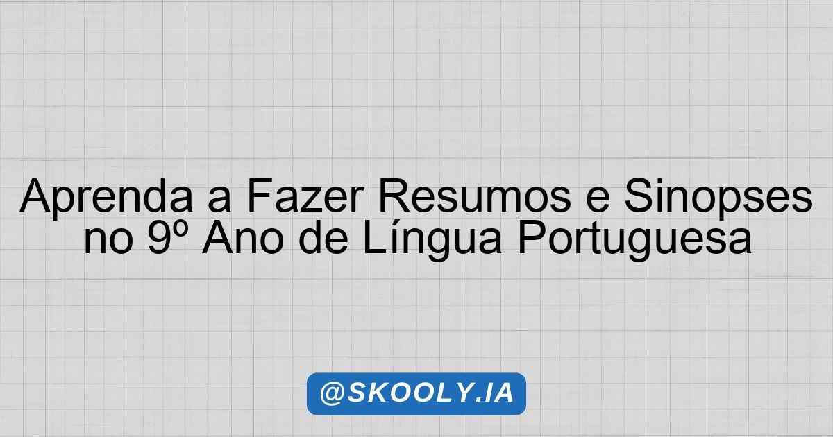 Aprenda a Fazer Resumos e Sinopses no 9º Ano de Língua Portuguesa