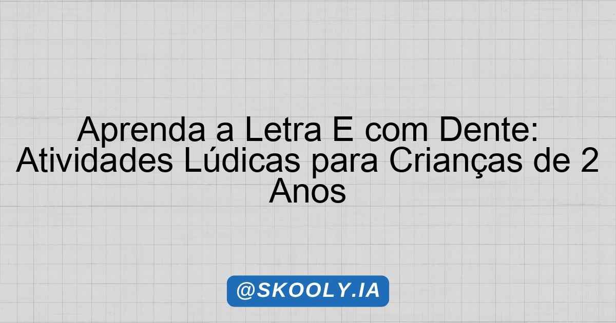 Neste plano de aula, o foco será o aprendizado da letra “E”, utilizando a palavra “dente” como elemento central. O objetivo principal é apresentar de forma lúdica e interativa o som e a forma da letra E, estimulando a escuta, fala, pensamento e imaginação das crianças, sem deixar de lado a importância do desenvolvimento da linguagem oral e do reconhecimento do mundo ao redor. A atividade será direcionada a crianças de 2 anos, respeitando suas necessidades e curiosidades, promovendo um ambiente de aprendizado que estimula a expressão e a criatividade.