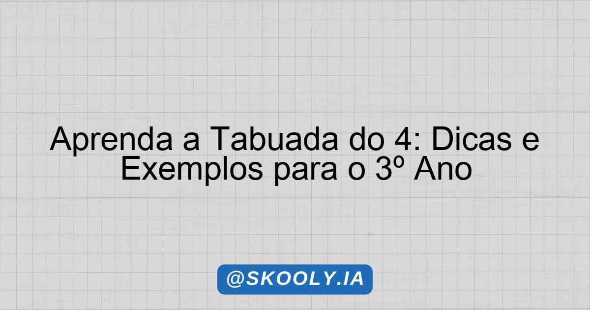 Esta tabela é uma ferramenta útil para alunos do 3º ano do Ensino Fundamental aprenderem e praticarem a tabuada do 4. Ela pode ser utilizada em sala de aula ou em casa para reforçar o aprendizado.