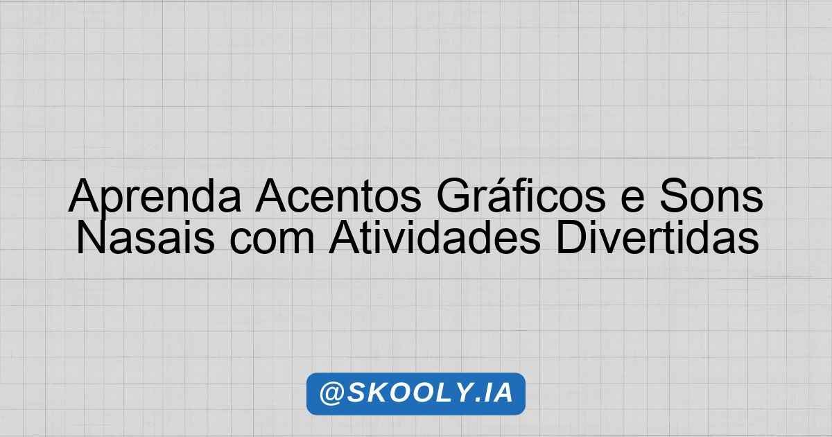 1. Teatro de Som: Criar uma peça curta onde os alunos representam palavras com til e outros sons nasais. Eles podem criar diálogos e interagir, enfatizando a pronúncia correta.