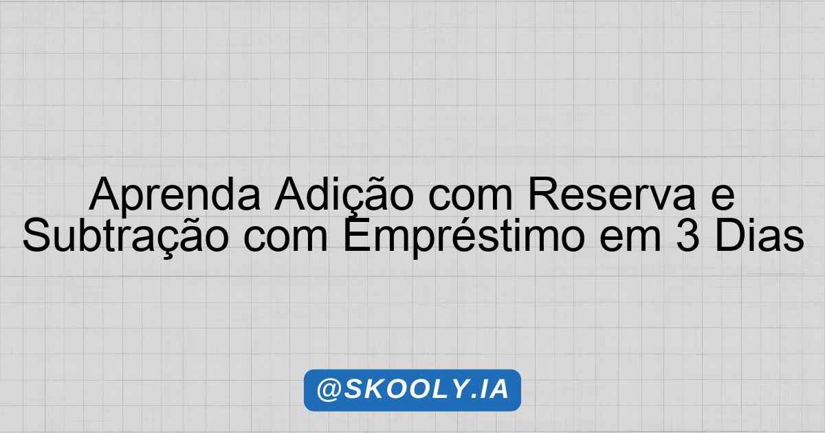 Aprenda Adição com Reserva e Subtração com Empréstimo em 3 Dias