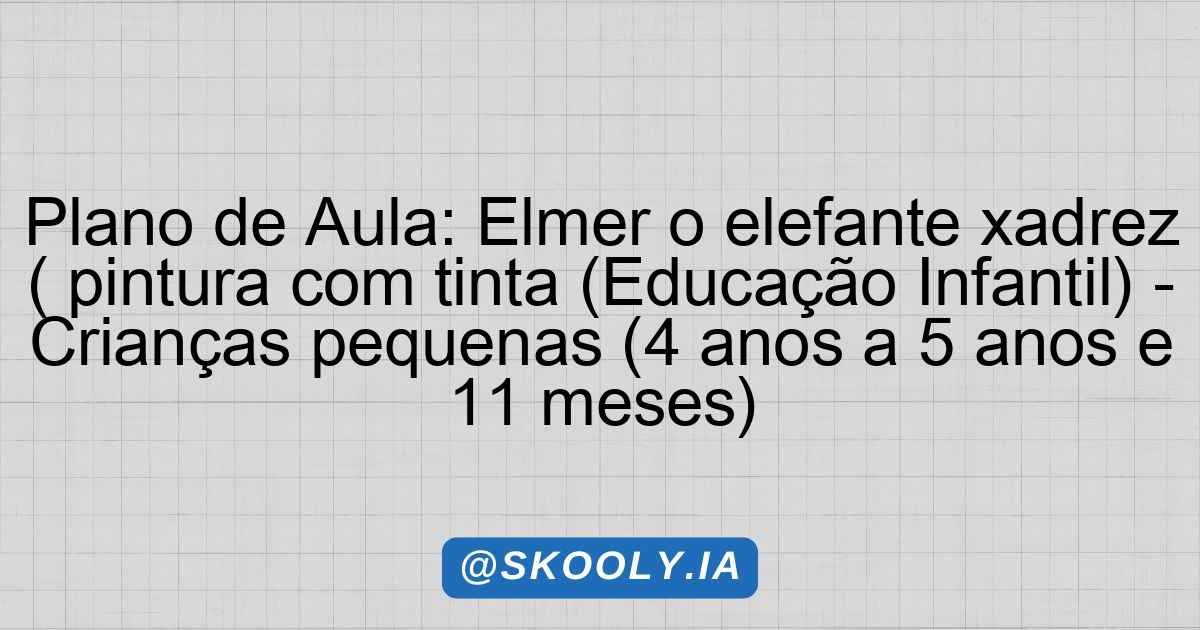 O plano de aula que apresentaremos a seguir busca explorar a obra “Elmer, o Elefante Xadrez”, proporcionando uma experiência lúdica e educativa por meio da arte da pintura. O objetivo é promover o desenvolvimento social, emocional e criativo das crianças, utilizando a história de Elmer como pano de fundo para uma atividade prática e enriquecedora. Este planejamento considera a importância de proporcionar um ambiente onde as crianças possam expressar-se livremente, desenvolver habilidades motoras e sociais, além de cultivar valores como a empatia e a cooperação.