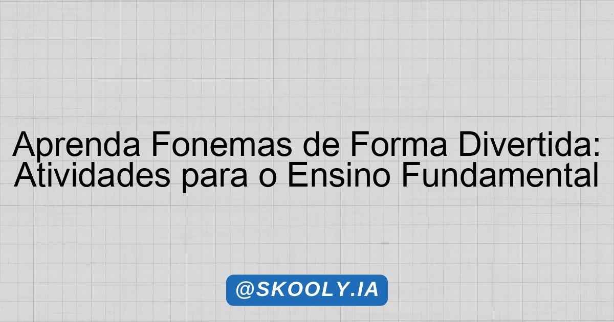Aprenda Fonemas de Forma Divertida: Atividades para o Ensino Fundamental