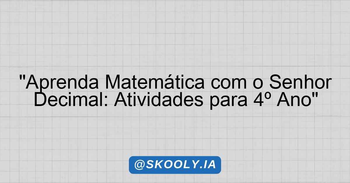 Um belo dia, o Senhor Decimal decidiu que era hora de compartilhar seus conhecimentos com as crianças da vila. Com um sorriso no rosto, ele enviou convites a todos os alunos do 4º ano da escola.
