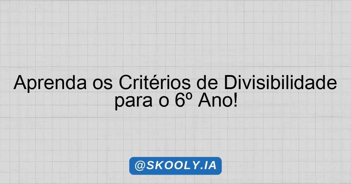Aprenda os Critérios de Divisibilidade para o 6º Ano!