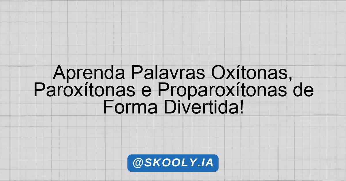 1. Atividade de Introdução (20 minutos): Apresentar a definição de oxítonas, paroxítonas e proparoxítonas. Pedir que os alunos pensem em exemplos e compartilhem com a turma.