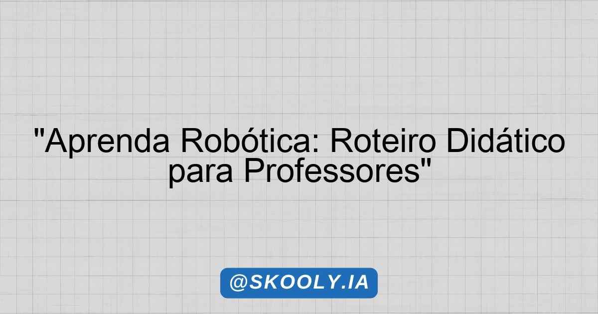 “Aprenda Robótica: Roteiro Didático para Professores”