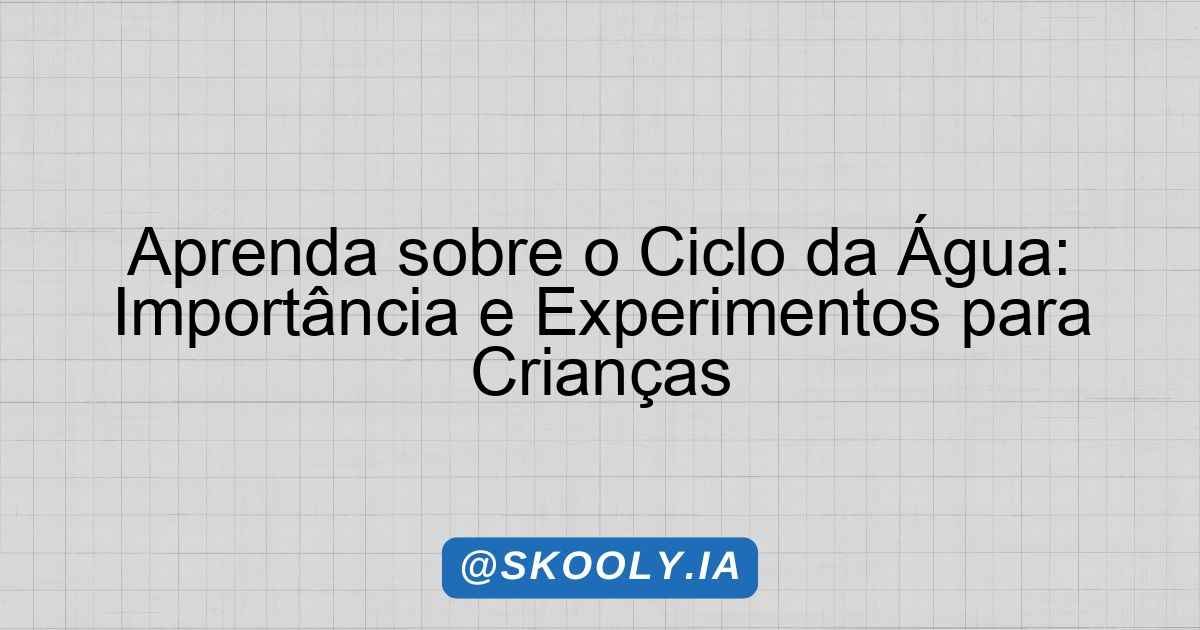Aprenda sobre o Ciclo da Água: Importância e Experimentos para Crianças