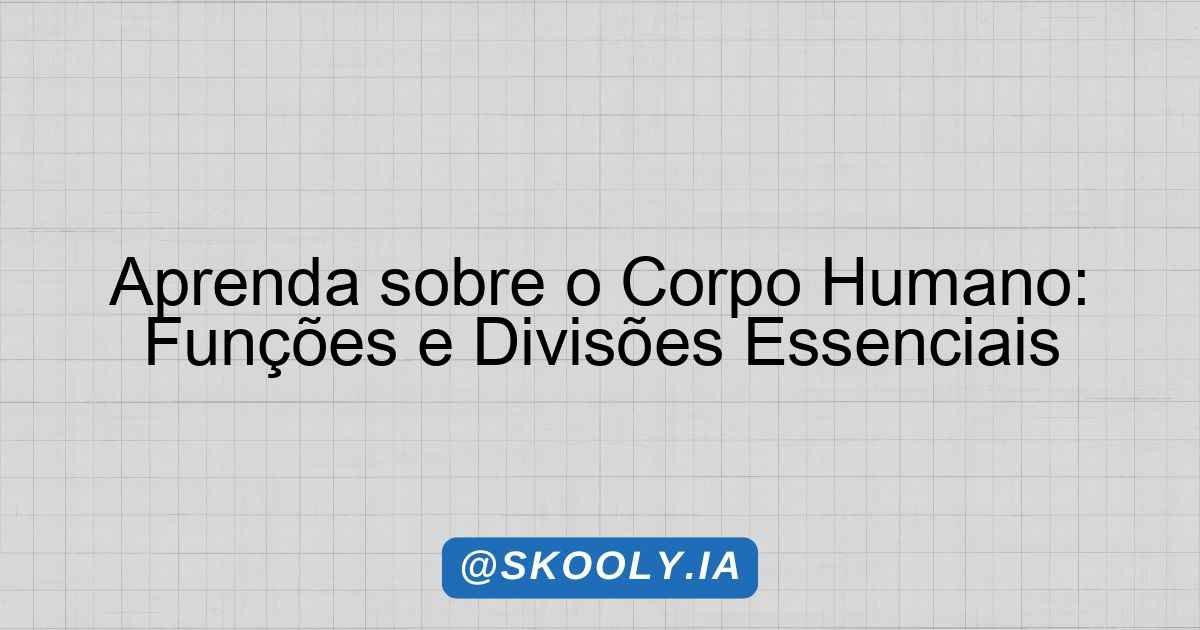 Apresente o tema da aula: “Corpo Humano – Divisão e Função”. Explique que o corpo humano é um complexo sistema que pode ser dividido em diferentes partes, cada uma com suas próprias funções essenciais para a vida.