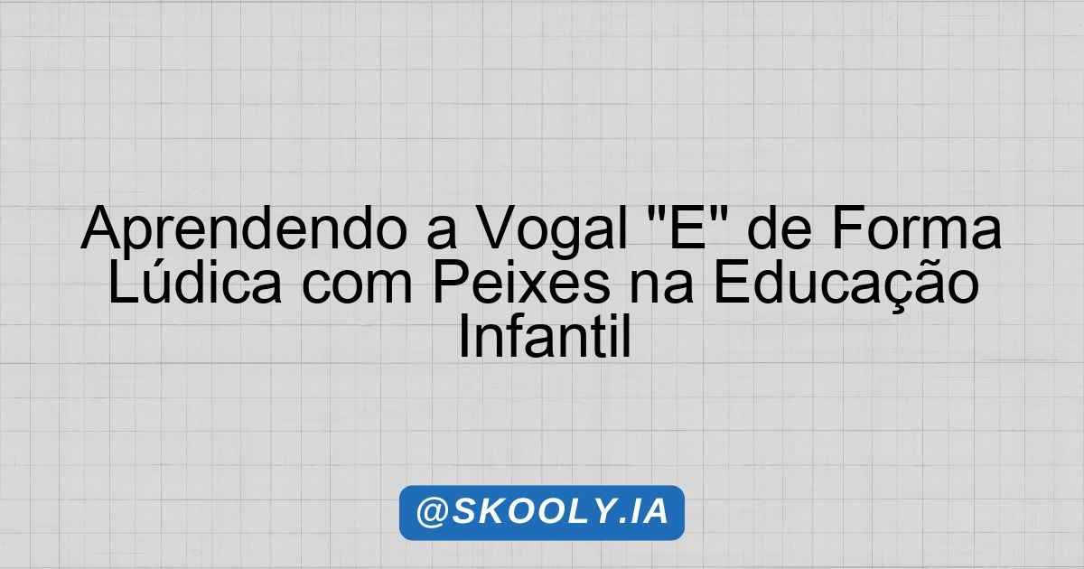 Desenvolver o reconhecimento da vogal “E” por meio do estudo das características dos peixes, promovendo a interação social e a expressão criativa.