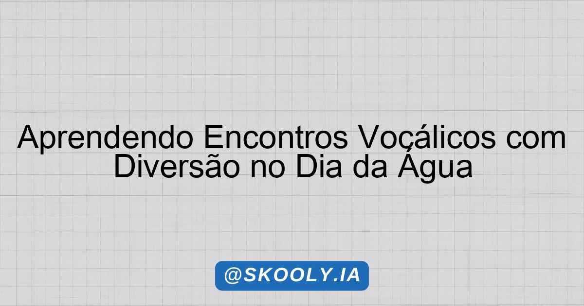 Desenvolver a consciência fonológica nas crianças, por meio do reconhecimento dos encontros vocálicos, enquanto promovemos a educação ambiental e a valorização da água como recurso fundamental, integrando atividades lúdicas que estimulem a criatividade e a interação social.