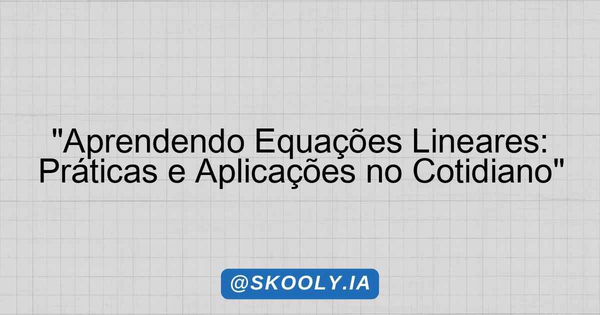 4. Aplicar a equação linear em situações cotidianas que exijam raciocínio lógico.