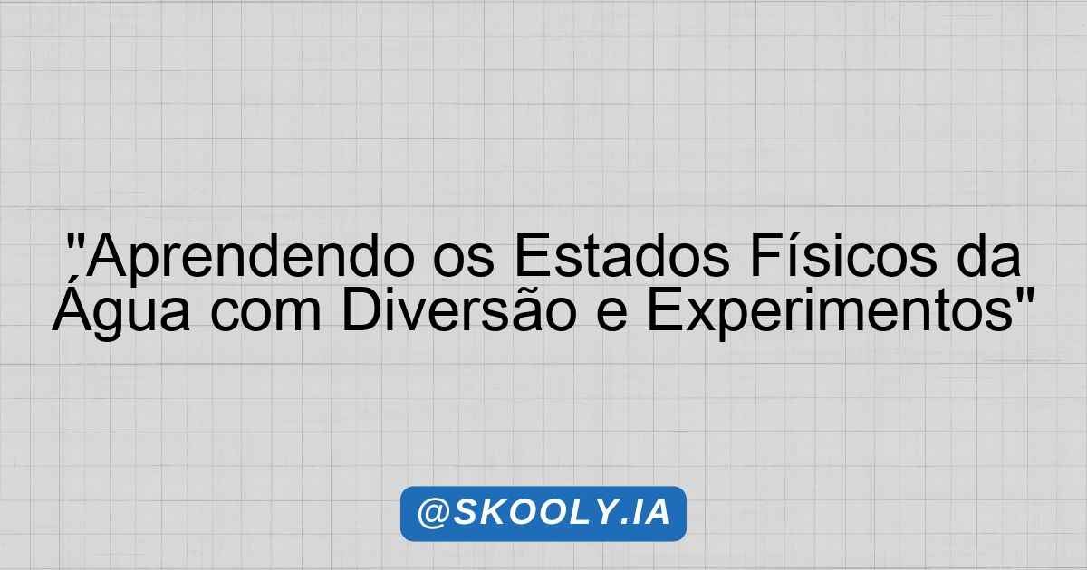 Compreender os três estados físicos da água (sólido, líquido e gasoso) através da observação e experimentação, desenvolvendo habilidades de investigação científica (EF01CI03).
