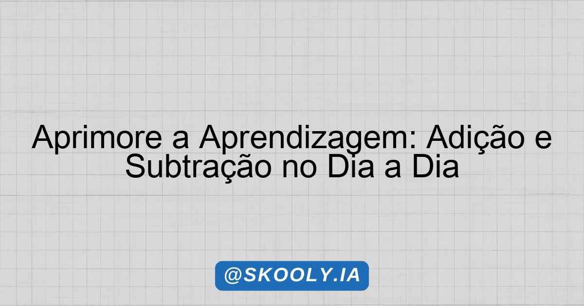 Aprimore a Aprendizagem: Adição e Subtração no Dia a Dia
