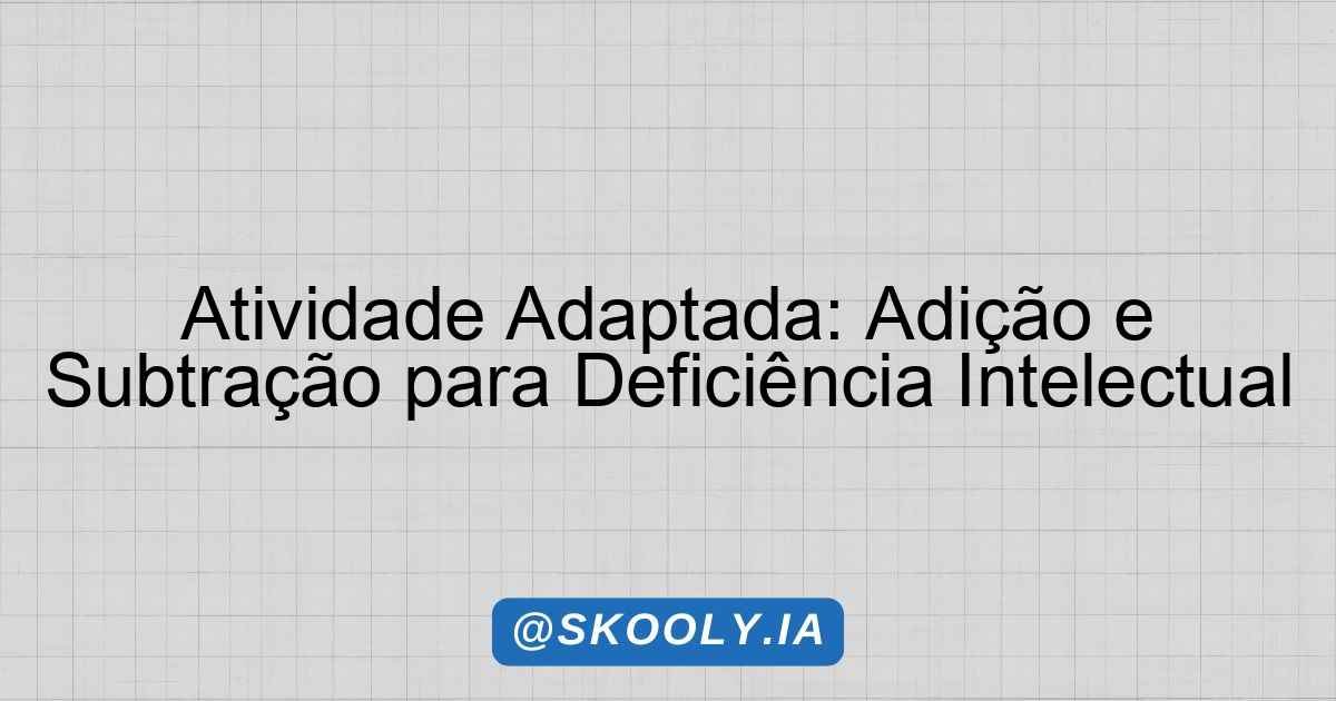 Tipo de Adaptação: deficiência intelectual (dificuldades cognitivas) (Grau moderado) | Ano: 4º | Disciplina: Matemática