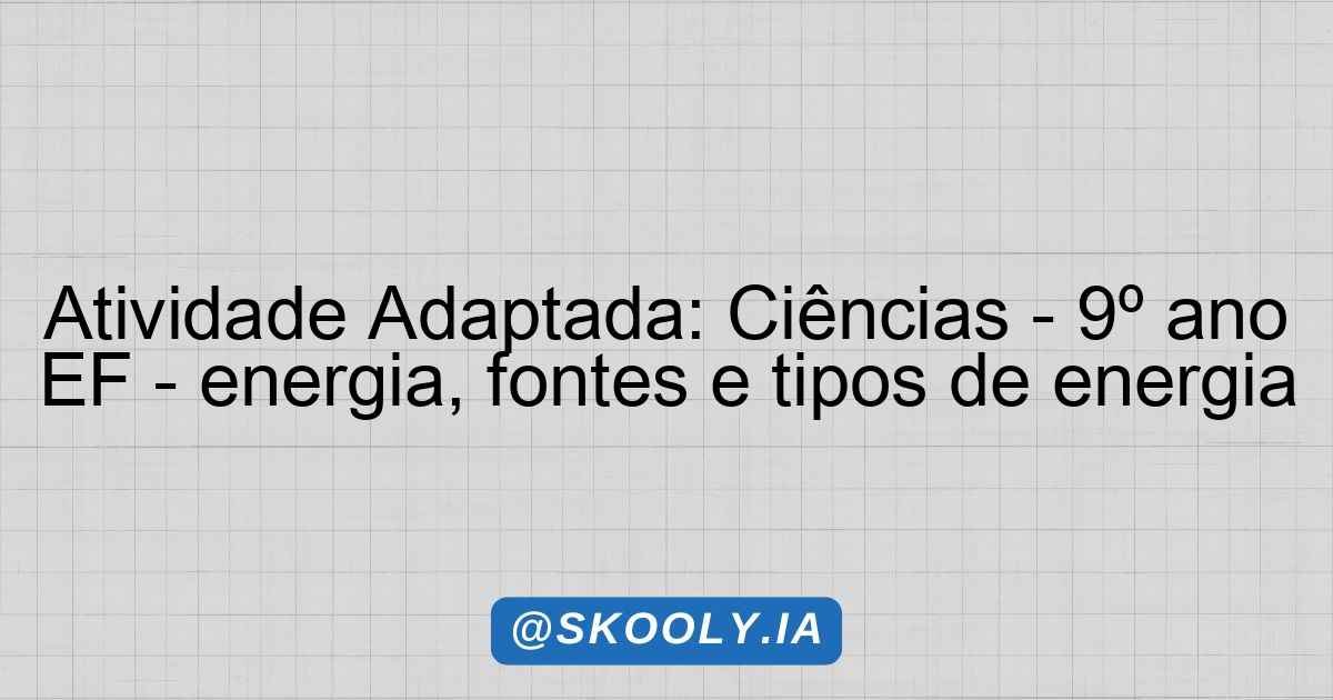 Atividade Adaptada – energia, fontes e tipos de energia