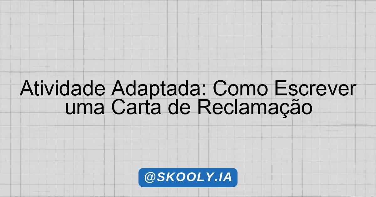 Nesta atividade, o aluno irá aprender sobre a estrutura e a finalidade de uma carta de reclamação. O objetivo é que ele consiga expressar uma insatisfação de forma clara e organizada, utilizando uma linguagem simples e direta. A atividade será individual e terá duração de 30 minutos.