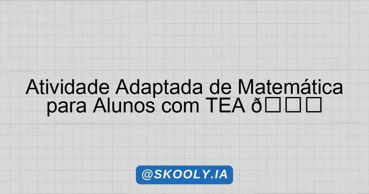 Tipo de Adaptação: Transtorno do Espectro Autista (TEA) (Grau moderado) | Ano: 8• sno | Disciplina: Matemática