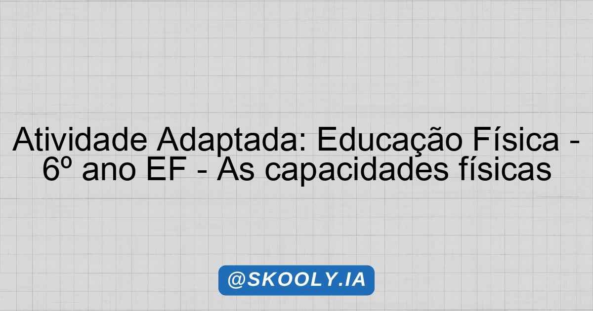Atividade Adaptada: Educação Física – 6º ano EF – As capacidades físicas