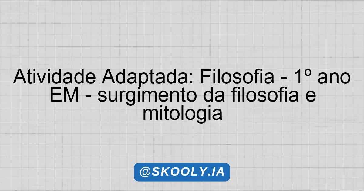 Atividade Adaptada: Filosofia – 1º ano EM – surgimento da filosofia e mitologia