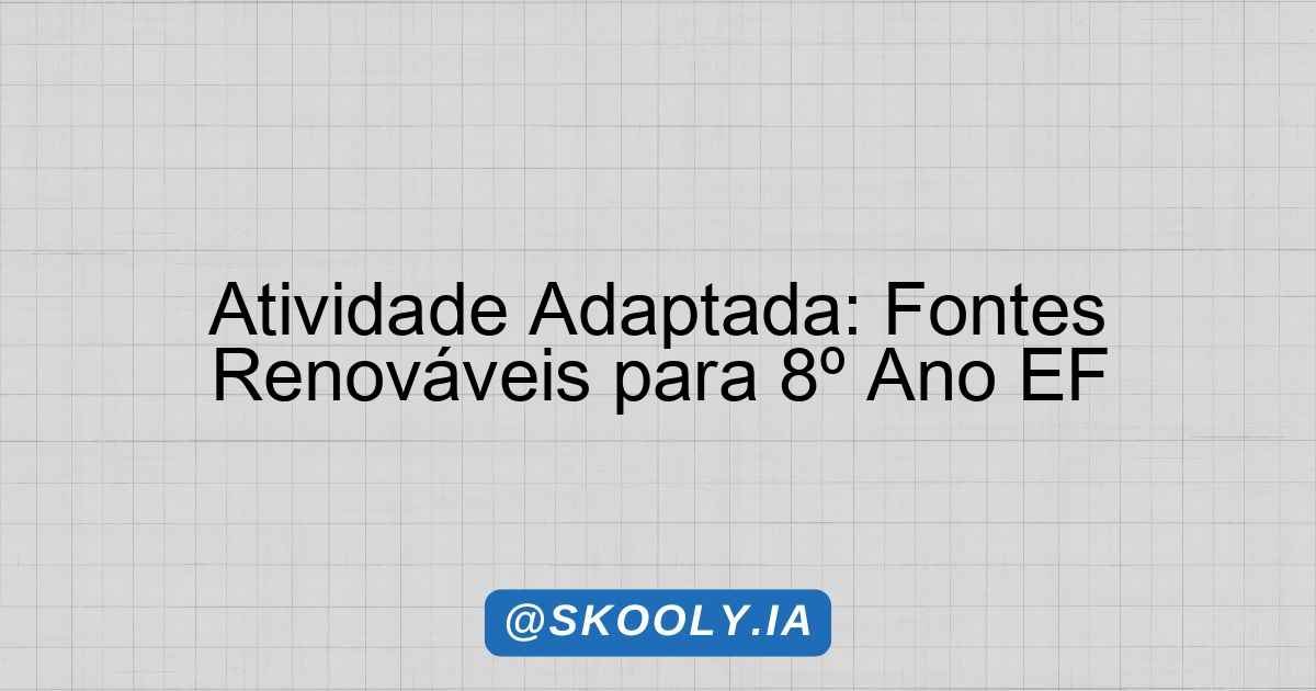 Atividade Adaptada: Fontes Renováveis para 8º Ano EF