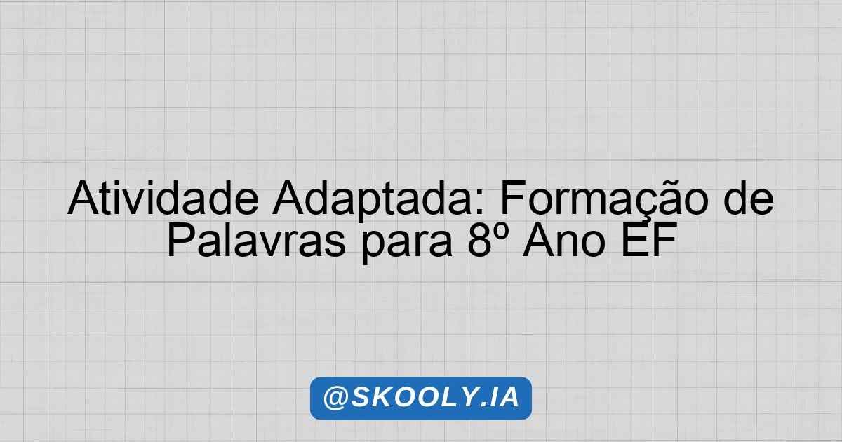 Atividade Adaptada – Processos de formação de palavras Compreender os conceitos de morfema, radical e afixo; identificar e classificar os processos de derivação e composição; reconhecer a influência de estrangeirismos e neologismos na língua portuguesa; analisar a formação de palavras por meio de siglas e abreviações.