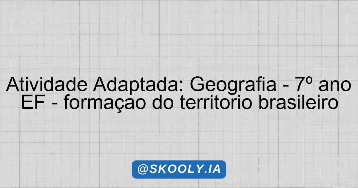 Atividade Adaptada: Geografia – 7º ano EF – formaçao do territorio brasileiro