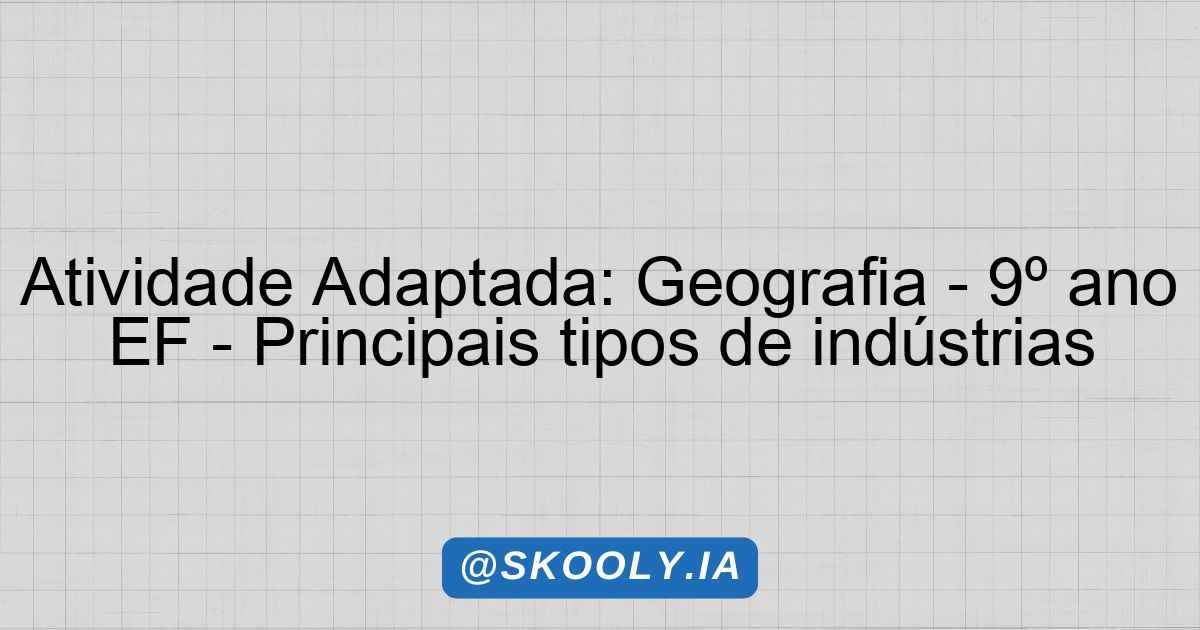 O aluno irá escolher um tipo de indústria (ex: alimentícia, têxtil, automobilística) e criar uma apresentação em formato de cartaz ou slide, destacando suas características principais.