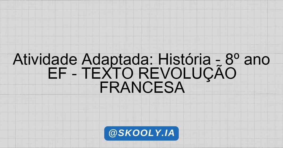 Atividade Adaptada: História – 8º ano EF – TEXTO REVOLUÇÃO FRANCESA