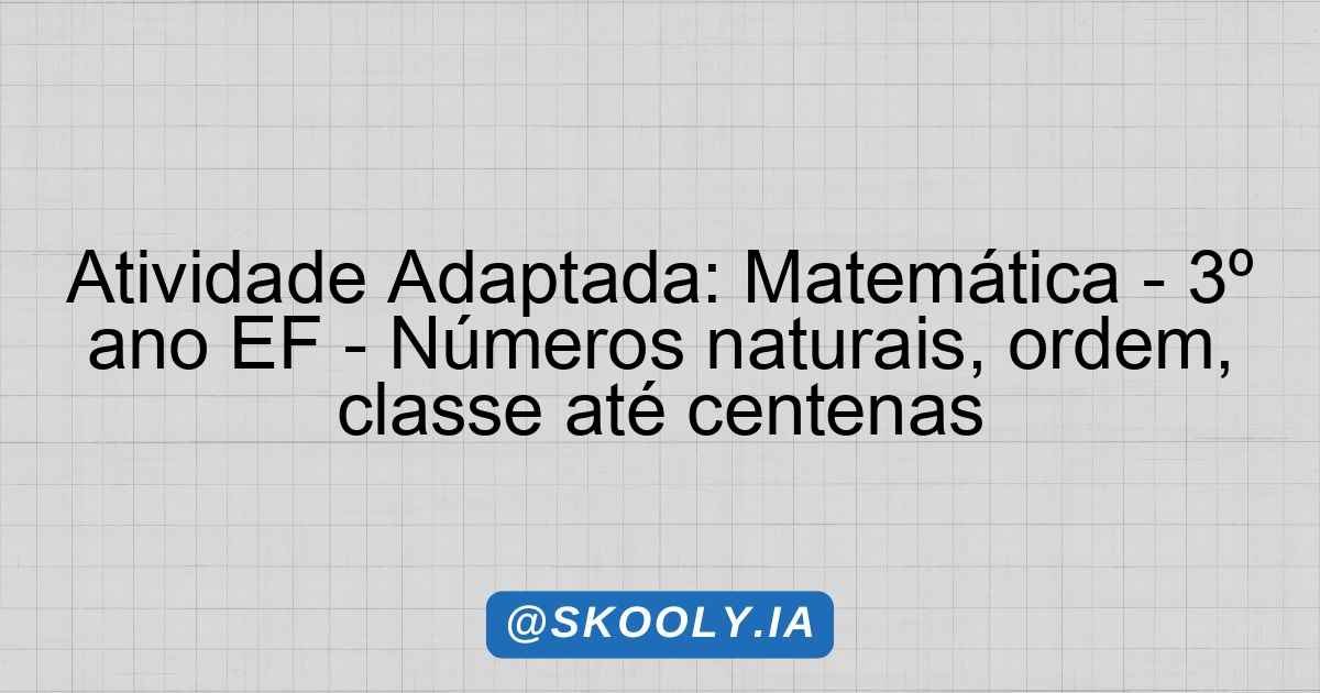 Atividade Adaptada – Números naturais, ordem, classe até centenas