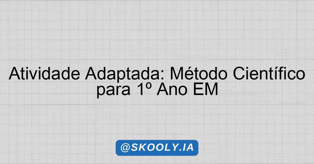 Atividade Adaptada: Método Científico para 1º Ano EM