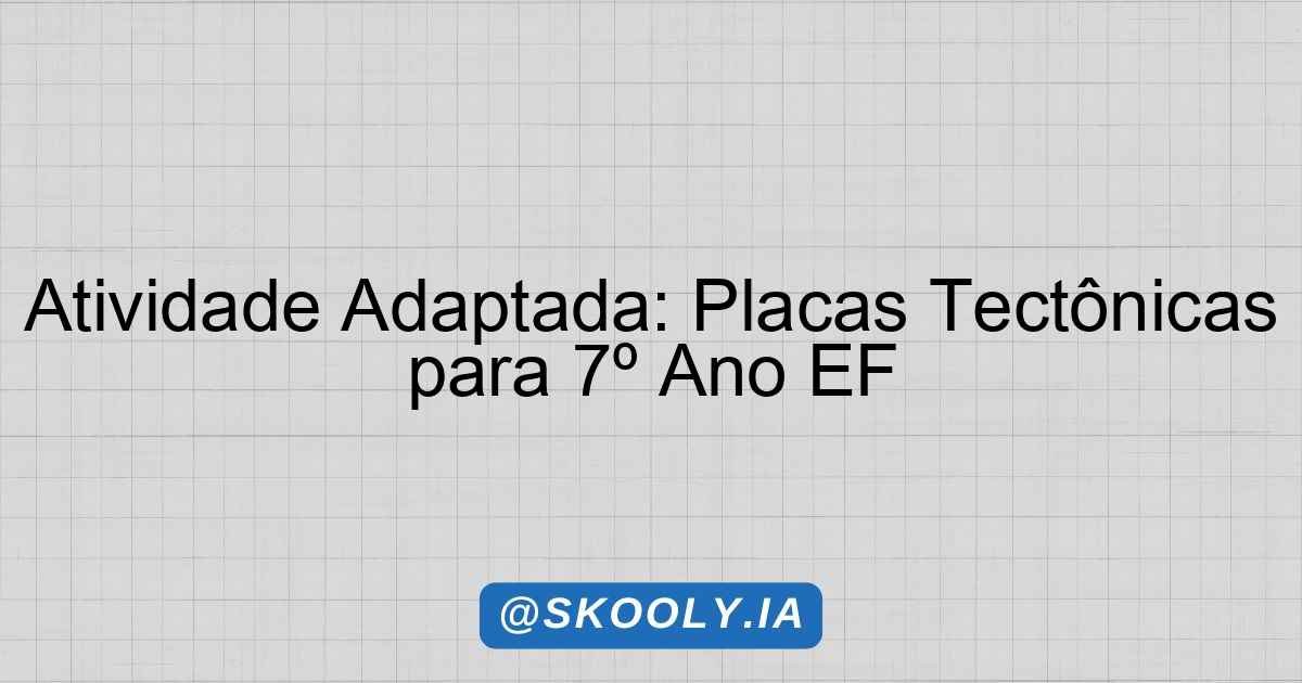 Atividade Adaptada: Placas Tectônicas para 7º Ano EF