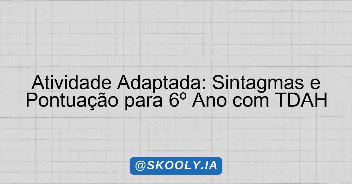 Atividade Adaptada – Sintagma nominal e verbal, pontuação