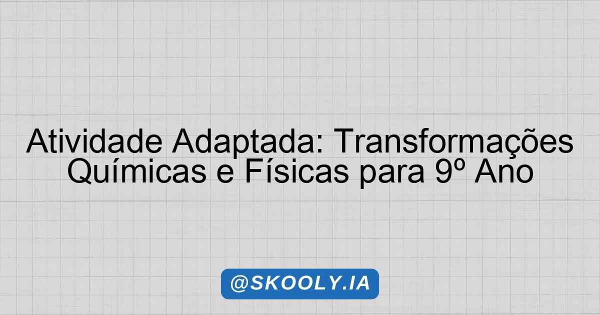 Atividade Adaptada: Transformações Químicas e Físicas para 9º Ano