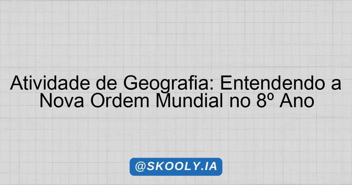 - Reconhecer os conceitos de ordem mundial e nova ordem mundial.