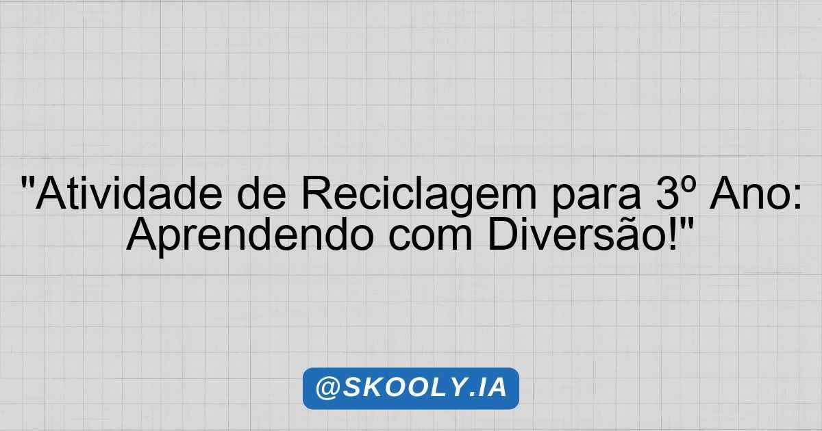 “Atividade de Reciclagem para 3º Ano: Aprendendo com Diversão!”