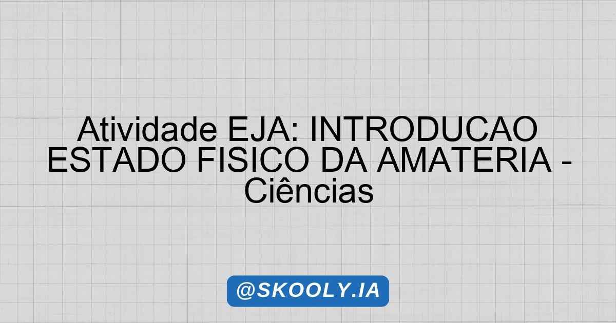 📚 Atividade EJA: INTRODUCAO ESTADO FISICO DA AMATERIA