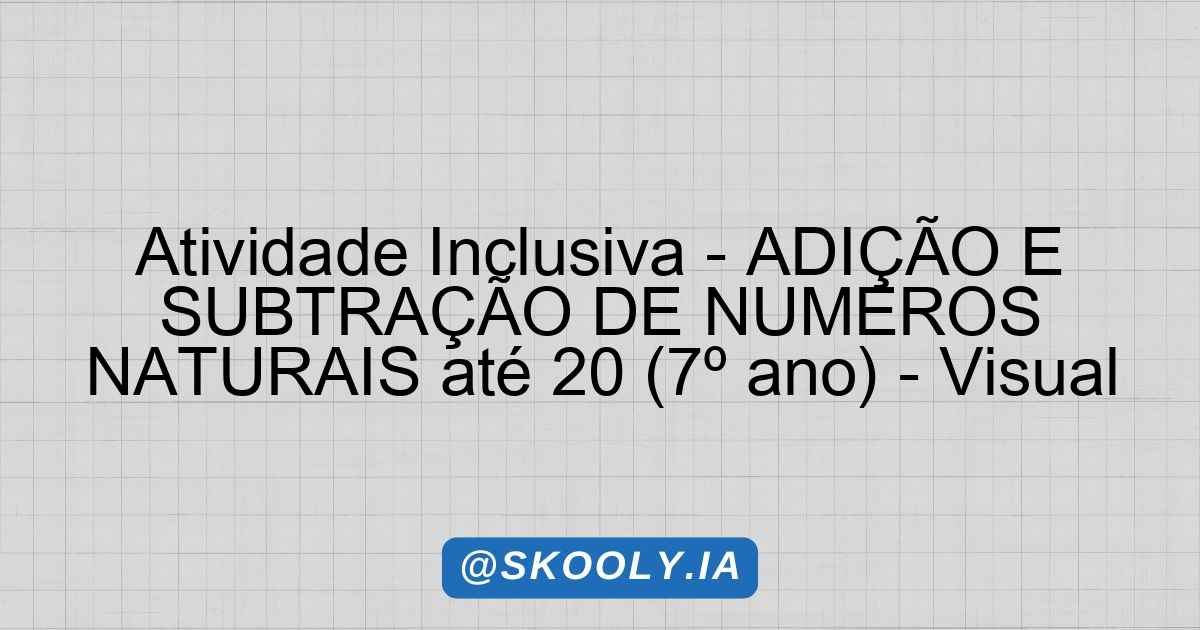 Atividade Inclusiva – ADIÇÃO E SUBTRAÇÃO DE NUMEROS NATURAIS até 20 (7º ano) – Visual