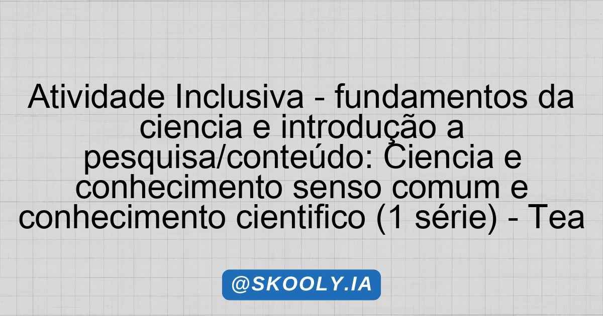 Esta atividade tem como objetivo apresentar aos alunos da 1ª série o conceito de ciência, diferenciando o conhecimento científico do senso comum. A atividade é adaptada para um aluno com Transtorno do Espectro Autista (TEA) de grau leve e será realizada de forma coletiva, promovendo a interação e a participação da turma.