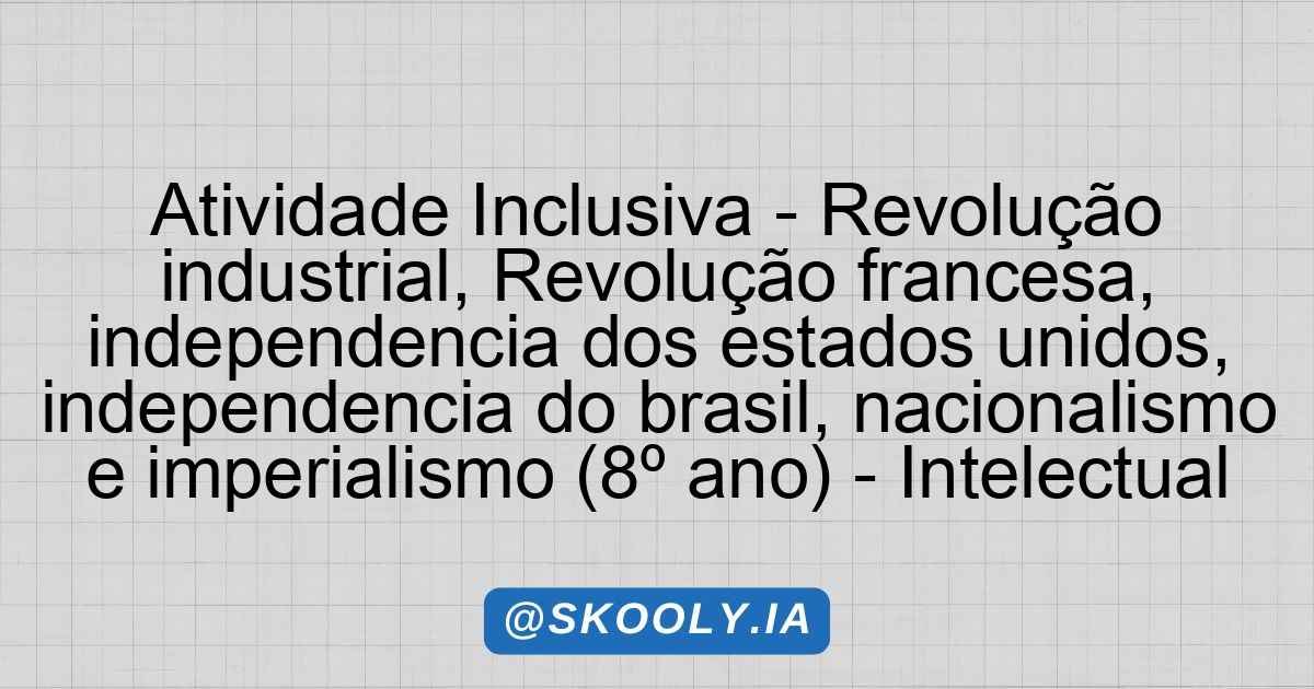 A atividade proposta visa explorar os eventos históricos da Revolução Industrial, Revolução Francesa, Independência dos Estados Unidos, Independência do Brasil, Nacionalismo e Imperialismo. O aluno será incentivado a expressar seu entendimento sobre os temas por meio de uma criação artística, promovendo a aprendizagem visual e prática.
