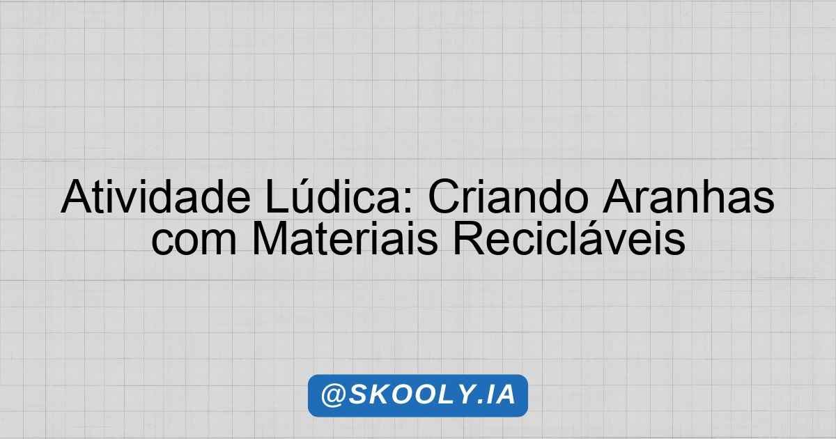O plano de aula a seguir é voltado para a Educação Infantil e é especialmente desenhado para crianças de 2 a 3 anos. Utilizando a história da Dona Aranha, os educadores poderão conduzir uma atividade lúdica que incentiva a criatividade e o desenvolvimento motor das crianças. A proposta permite que os pequenos explorem a confecção de aranhas utilizando material reciclável, ao mesmo tempo que são apresentados a conceitos básicos da natureza e da poesia para a infância.